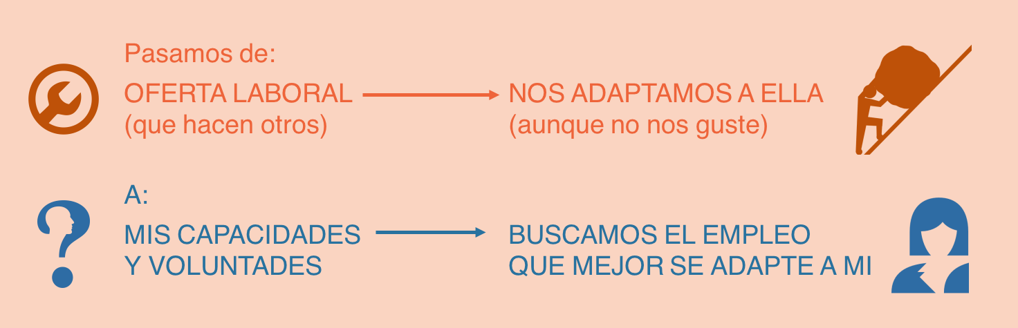 ¿Por qué para los mayores de 50 años no nos sirven los métodos tradicionales de búsqueda de trabajo? Porque estos están pensados y diseñados desde la oferta (los empleadores), esperando que las personas encajen en los puestos que los ofertantes ponen a disposición del mercado laboral, y estos solo piensan en contratar personas más jóvenes. Se siguen unos patrones estándares, se sigue lo que siempre se ha hecho.